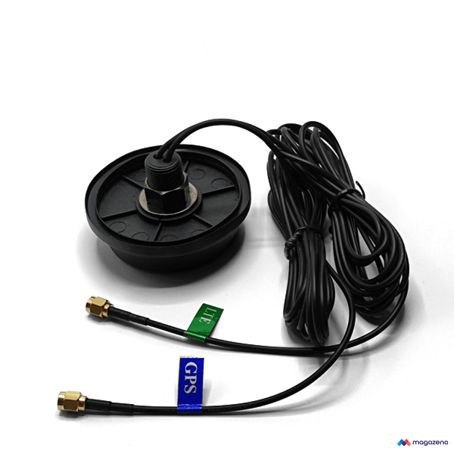 The ANT-VP-4G-GPS offers a very high resistance to destruction due to its robust construction. This multi-puck antenna comes with two cables, each with an SMA male connector.