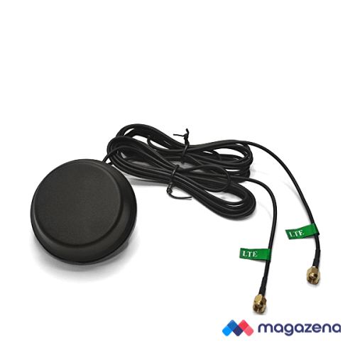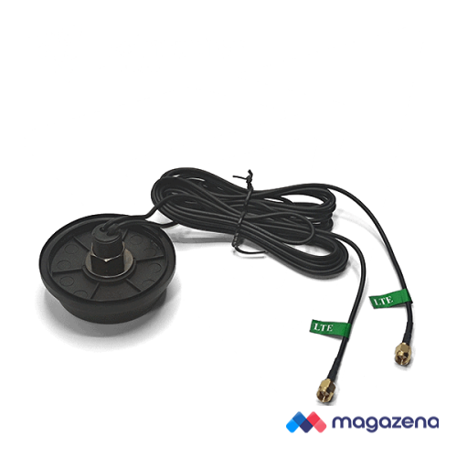 This MIMO-puck antenna comes with two cables , each with an SMA male connector. The antenna can be mounted through a single hole of Ø 17 mm and then secured using the supplied nut. A rubber edge and O-ring ensure that everything is water and dust resistant after installation. The antenna itself has an IP67 rated housing.