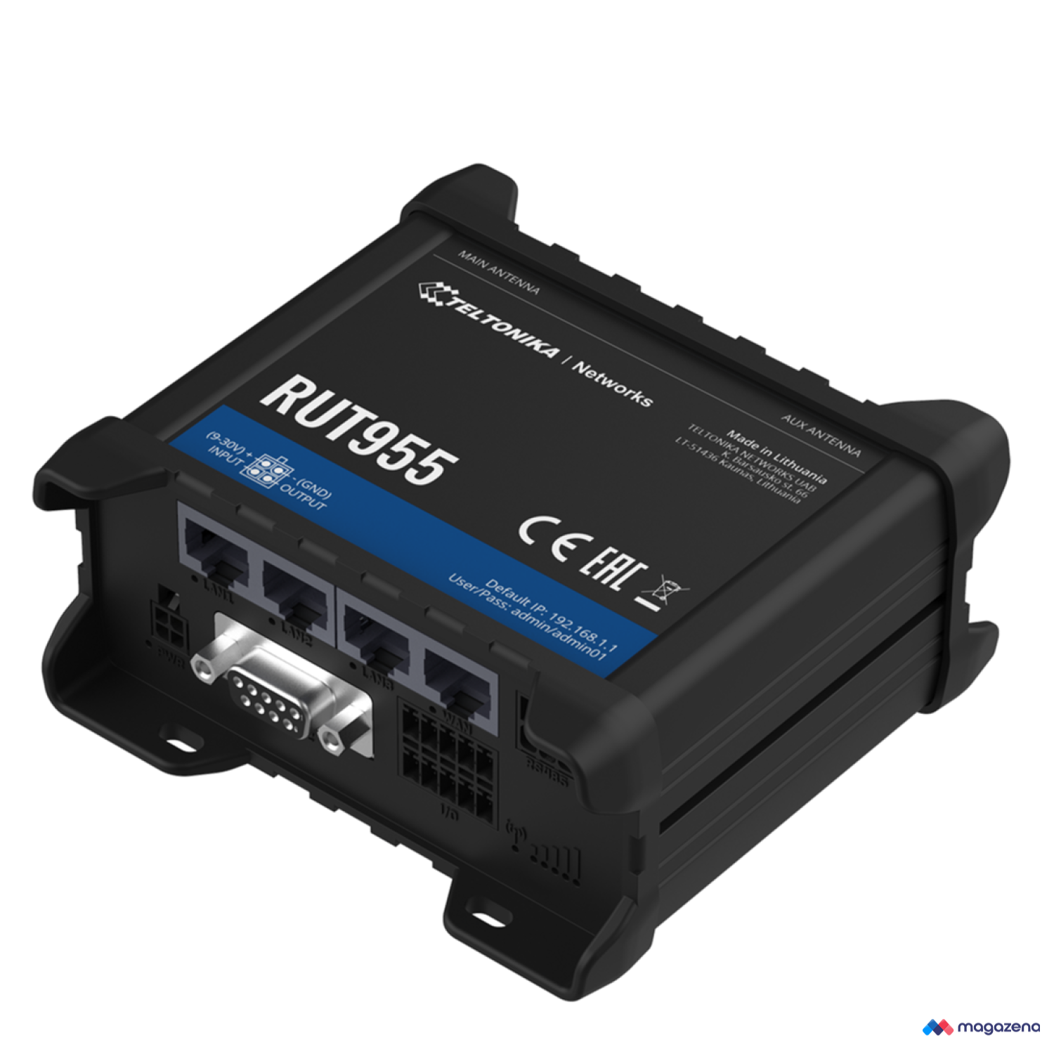 Teltonika 's RUT955 is an industrial 4G LTE router with high reliability and suitable for use in machine-to-machine (M2M) applications in the EMEA region.